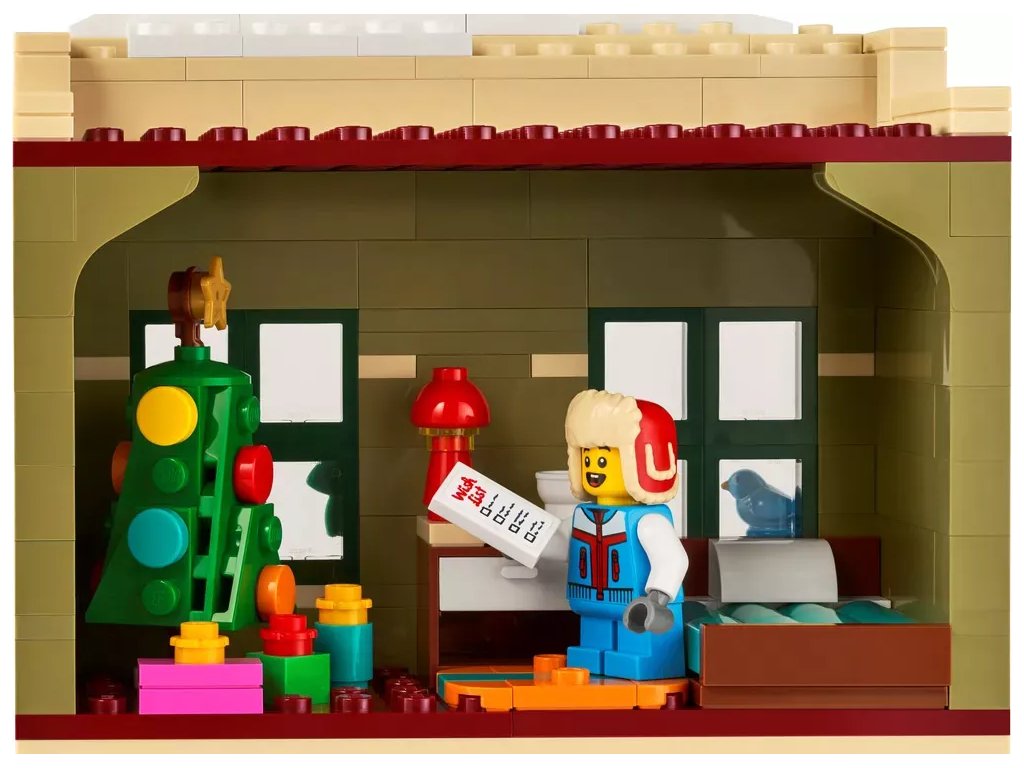 Prozkoumejte všechny detaily hračkářství a obchodu s hudebninami. V obou obchodech se ukrývají dárky a nad nimi najdete propracované byty, v nichž si mohou majitelé po náročném dni odpočinout. Mezi další detaily patří tramvajová zastávka a dítě odesílající dopis pro Santu. Dále nechybí 4 knížečky s návody, aby mohla stavět celá rodina společně.