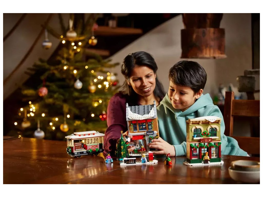 Stavebnice LEGO® Vánoce na hlavní ulici (10308) doslova dýchá sváteční atmosférou. Jedná se o nejnovější přírůstek do populární kolekce LEGO Zimní vesnice. Postavte si rozkošnou vánoční vesnici s hračkářstvím, obchodem s hudebninami a nakupujícími, ale také majiteli obchodu a jejich útulnými byty. Pak se vrhněte na tramvaj, která nakupující zaveze ze zábavného výletu domů.