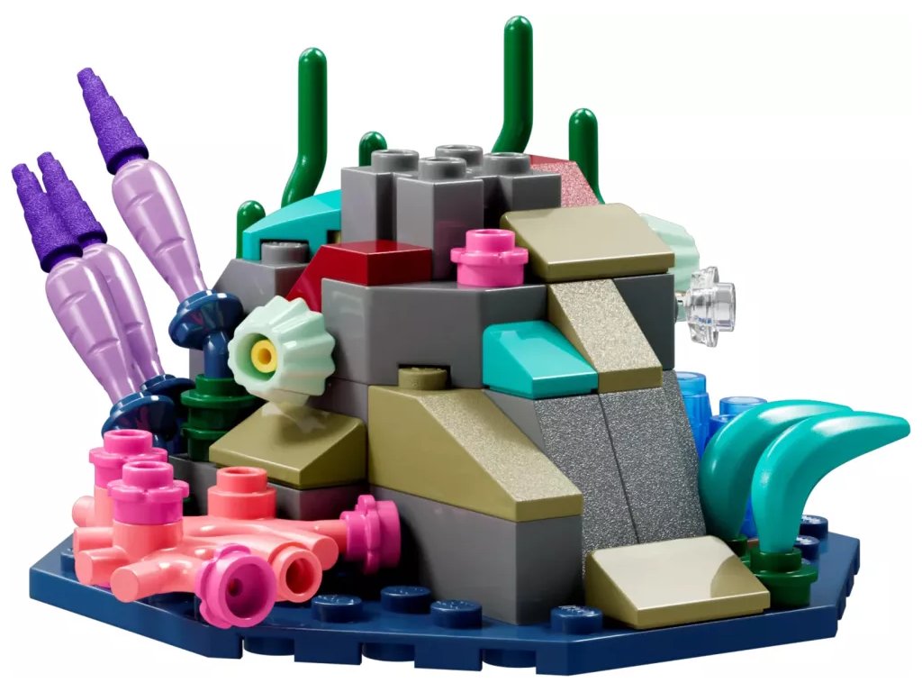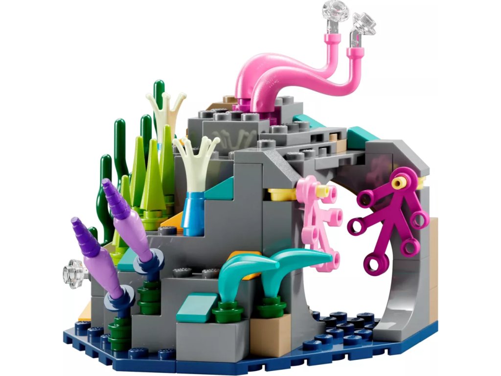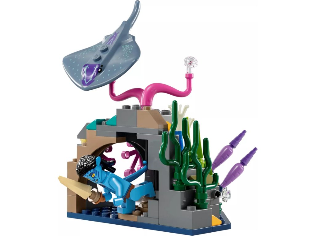 - Co se ukrývá v krabici – K dispozici je vše, co potřebujete k vytvoření ponorky Mako, 3 prostředí korálového útesu v pandorském oceánu, včetně jeskyně, a také minifigurky Neteyama, Ao’nunga, Spidera a Quaritche z RDA