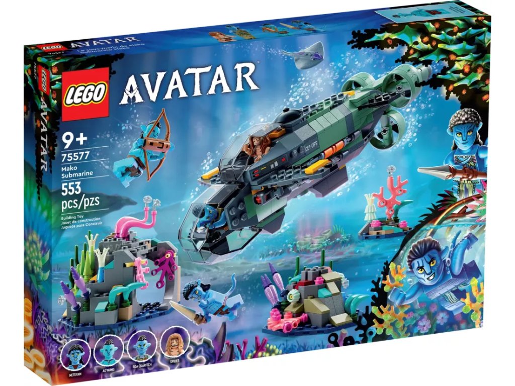 - Akce a dobrodružství ze světa filmu Avatar – Děti a fandové snímku Avatar si mohou připomenout pokračování Avatara nebo si vymýšlet vlastní scény a příběhy se stavebnicí Ponorka Mako (75577) od LEGO® Avatar