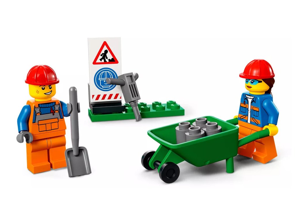 - Co se ukrývá v krabici? – Vše, co děti potřebují k sestavení náklaďáku s míchačkou na beton od LEGO® City, a k tomu navíc kolečko, sbíječku, dopravní značku a 2 minifigurky dělníků