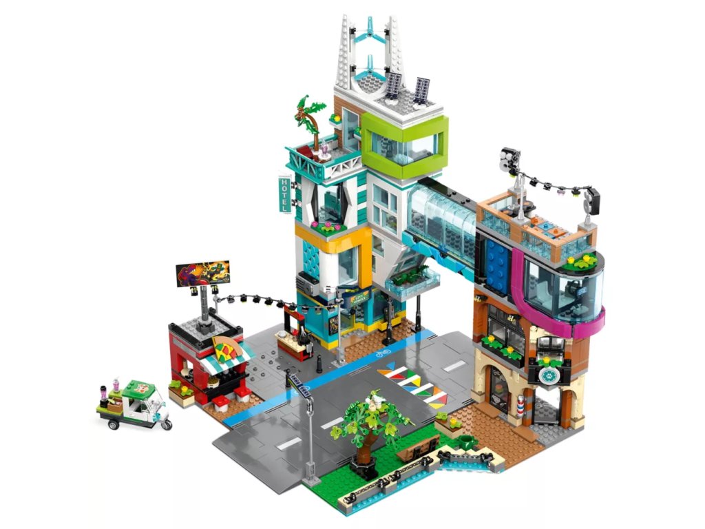 - Stavebnice nabitá funkcemi – Sada LEGO® City Centrum města (60380) obsahuje spoustu kombinovatelných modulárních pokojů a detailů a funkcí pro nezapomenutelný zážitek při stavění i hraní
