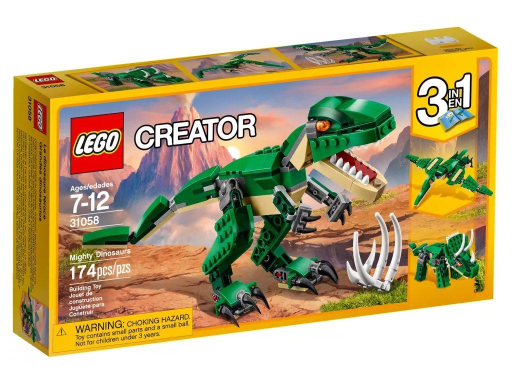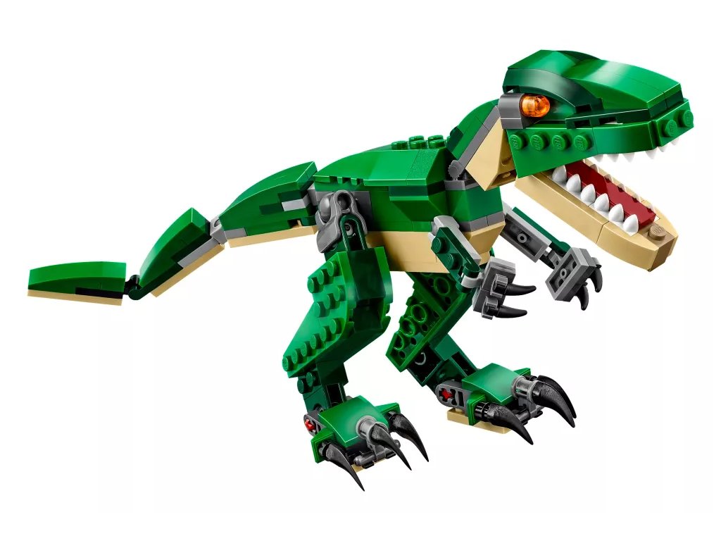 Užij si spousty zábavy s úžasným T. Rexem, který má jasně oranžové oči, ohebné klouby, pohyblivou hlavu, velké drápy a otevírající se tlamu s ostrými zuby. Součástí je také dinosauří kořist ve formě sestavitelného hrudníku se žebry. Přestavuj tento model LEGO® Creator 3 v 1 Úžasného dinosaura a postav si Triceratopse nebo Pterodaktyla.