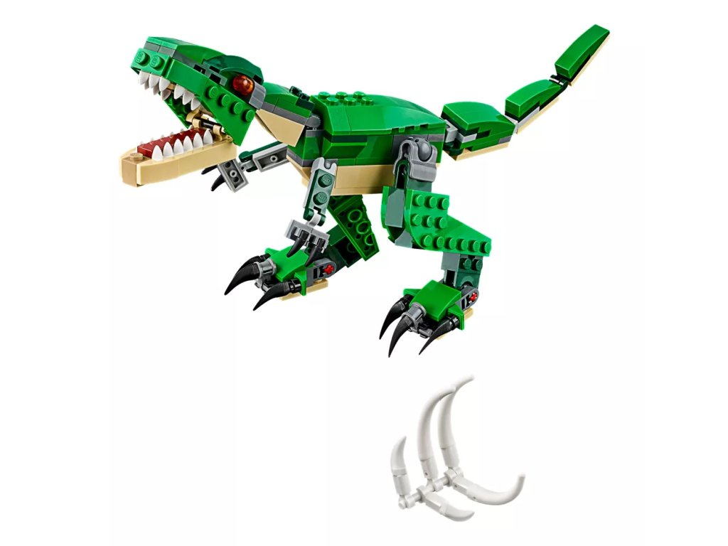 - Obsahuje model T. Rexe 3 v 1 s jasně oranžovýma očima, ohebnými klouby, pohyblivou hlavou, velkými drápy a otevírací tlamou s ostrými zuby. Součástí je také dinosauří kořist ve formě sestavitelného hrudníku se žebry.