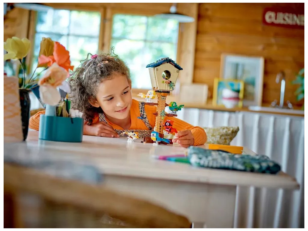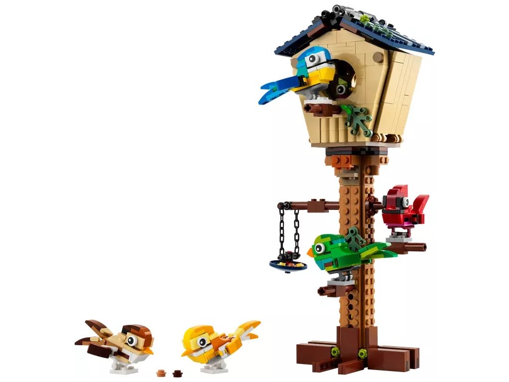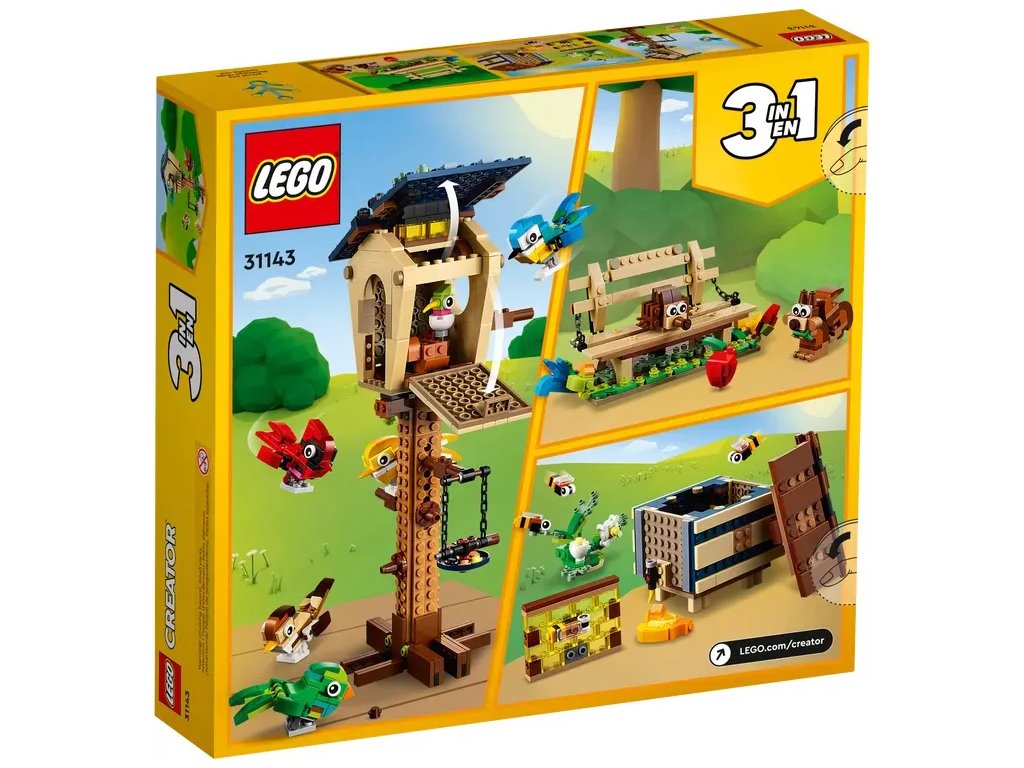 - Model 3 v 1 – Fanoušci LEGO® si se stavebnicí LEGO Creator 3 v 1 Ptačí budka (31143) mohou přehrávat úžasné příběhy se zvířaty. Čekají je 3 modely v 1: ptačí budka, zvířátka na lavičce v parku a včelí úl