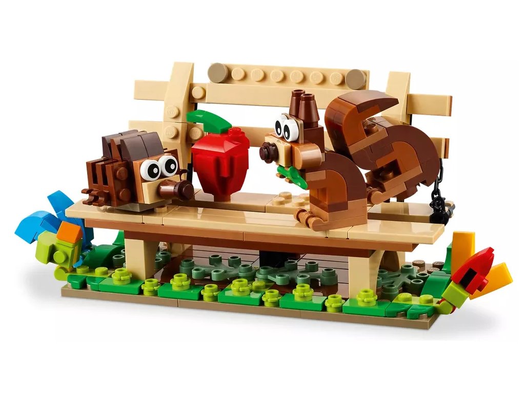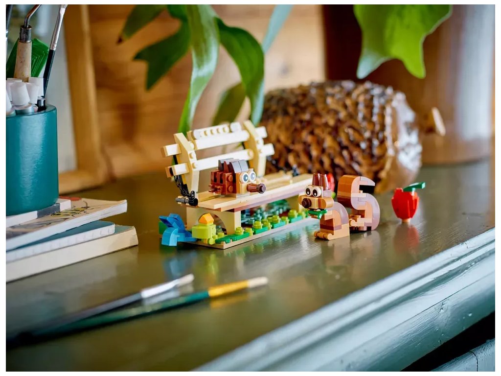 Děti si s radostí vyberou jeden ze tří modelů se zvířaty z této stavebnice LEGO 3 v 1. Mohou postavit ptačí budku s 5 ptáčky a přestavět ji na ježka a veverku na lavičce v parku nebo na úl se 4 včelkami a pláství medu.