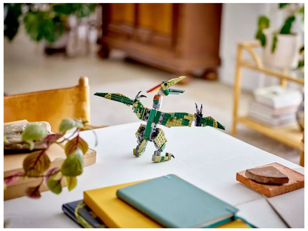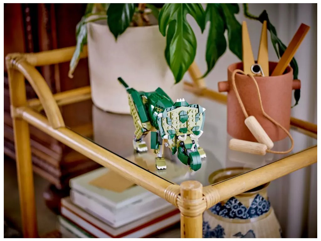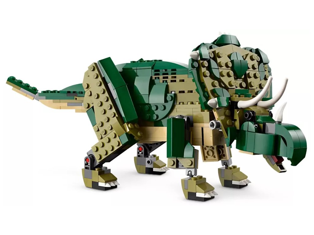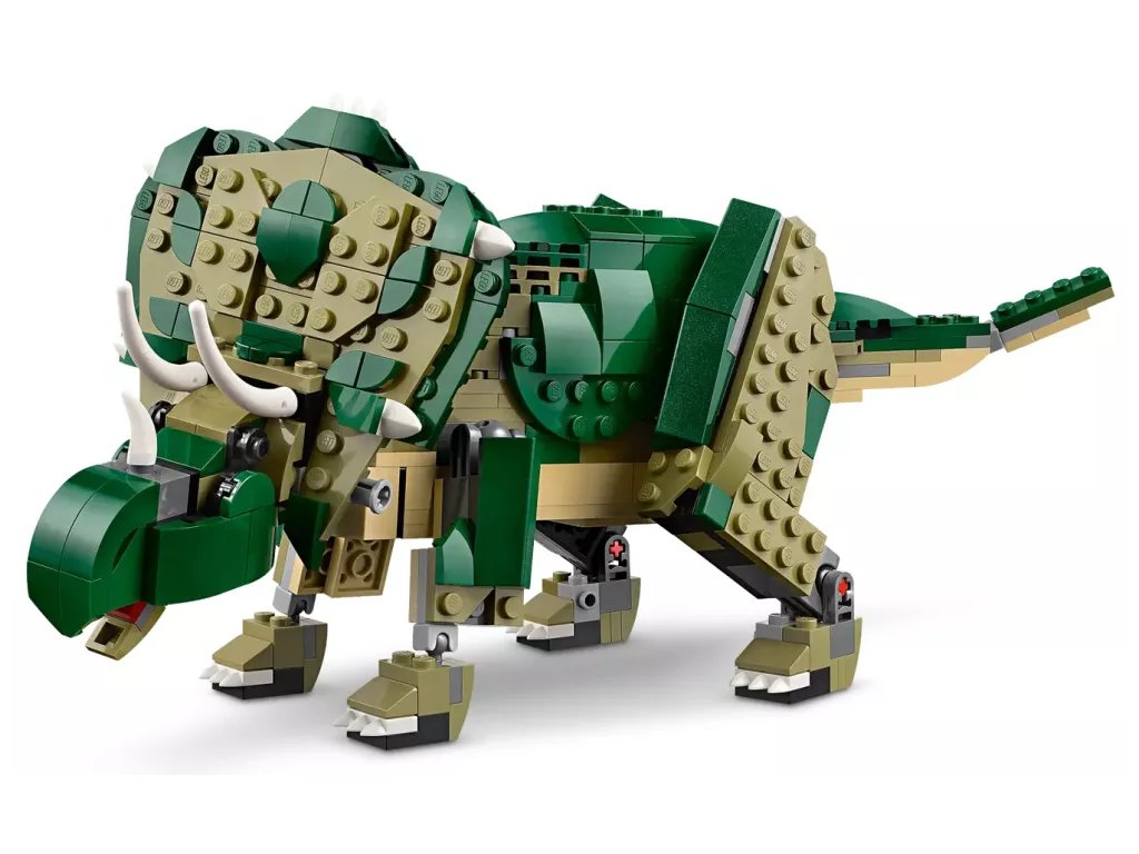 Tato dinosauří stavebnice LEGO® dětem přináší svět plný strhujících herních možností se 3 různými dinosauřími hračkami, které si postaví ze stejné sady kostek. Mohou vytvořit pohyblivého T-rexe, přestavět ho na obávaného triceratopse se 3 rohy nebo ho proměnit v pterodaktyla s velkými pohyblivými křídly.