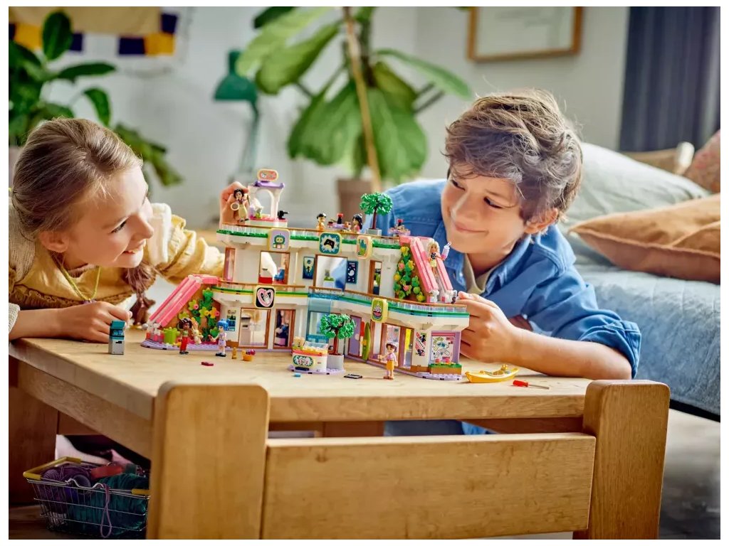 Se stavebnicí LEGO® Friends (42604) Obchodní centrum v městečku Heartlake se děti od 8 let pustí do hraní příběhů o nakupování. Součástí stavebnice je 7 postav, které inspirují kreativní vyprávějí a pomáhají rozvíjet sociální dovednosti dětí.