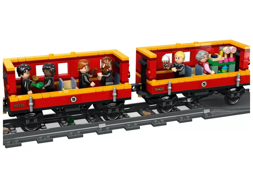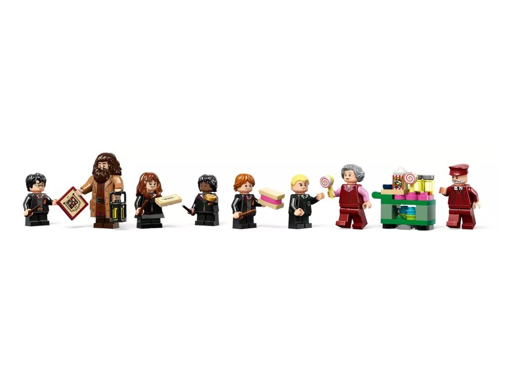 - 8 minifigurek – Harry Potter™, Ron Weasley™, Hermiona Grangerová, Draco Malfoy™, Lee Jordan, Rubeus Hagrid™, čarodějka s pojízdným bufetem a strojvůdce, a navíc rodinné fotoalbum