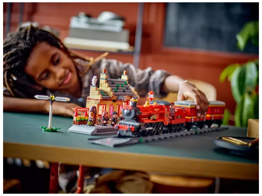 - Stavebnice s vlakem od LEGO® Harry Potter™ (76423) – Postavte si nezapomenutelnou scénu, kde Hagrid™ vítá bradavické studenty prvního ročníku, kteří Bradavickým expresem přijíždějí na stanici v Prasinkách