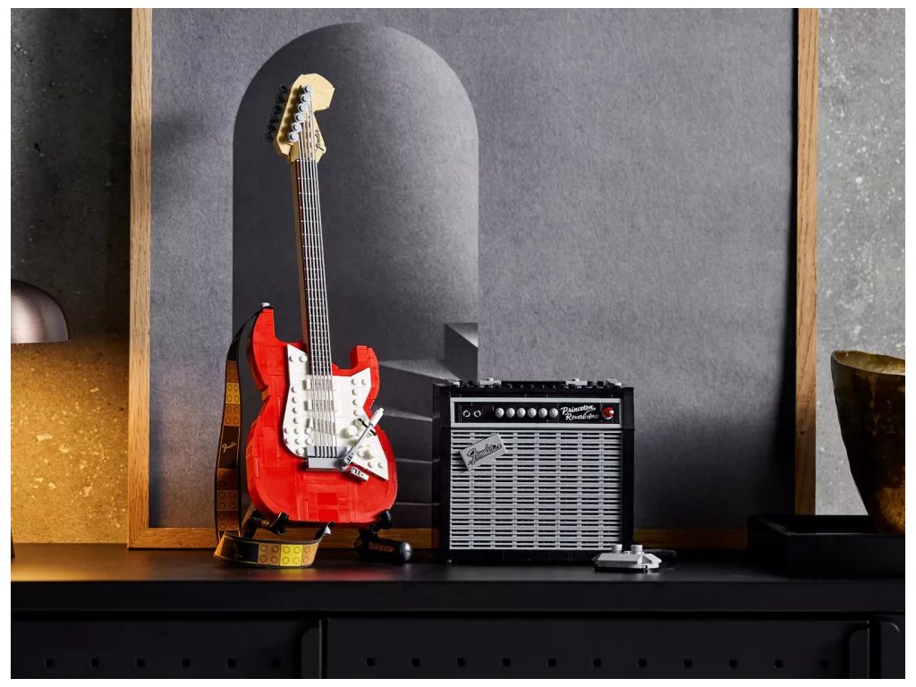 - Postavte si výstavní model legendární kytary Fender® Stratocaster® a zesilovače Fender 65 Princeton® Reverb s úžasně propracovanou sadou LEGO® Ideas (21329).