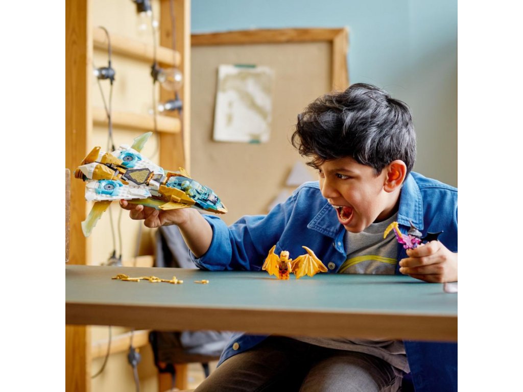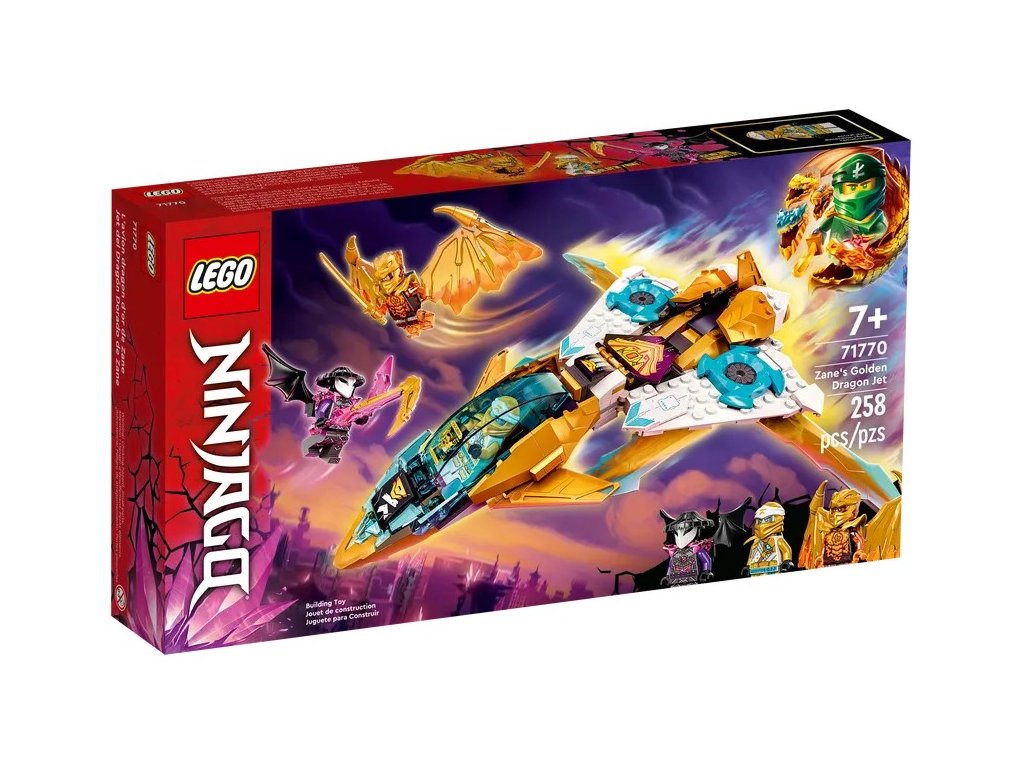 - Model stíhačky NINJAGO® – Fanoušci nindžů si jistě rádi připomenou akční scény ze seriálu NINJAGO: Crystallized se stavebnicí Zaneova zlatá dračí stíhačka (71770) od LEGO® NINJAGO