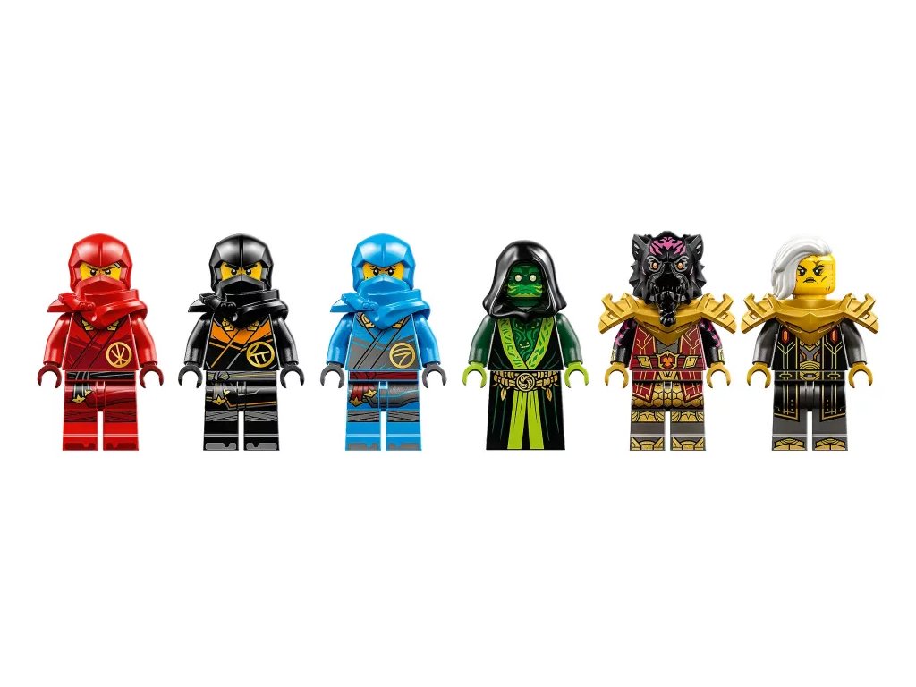 Tento akcí nabitý model obsahuje také 6 minifigurek: Colea, Kaie, a Nyu, kteří mají dvě katany, ducha chrámu s velkým zlatým mečem, lorda Rase se zlatým kladivem a císařovnu Beatrix s císařským mečem. U vrcholu chrámu najdete sběratelské dračí energetické jádro, o které postavy mohou bojovat.