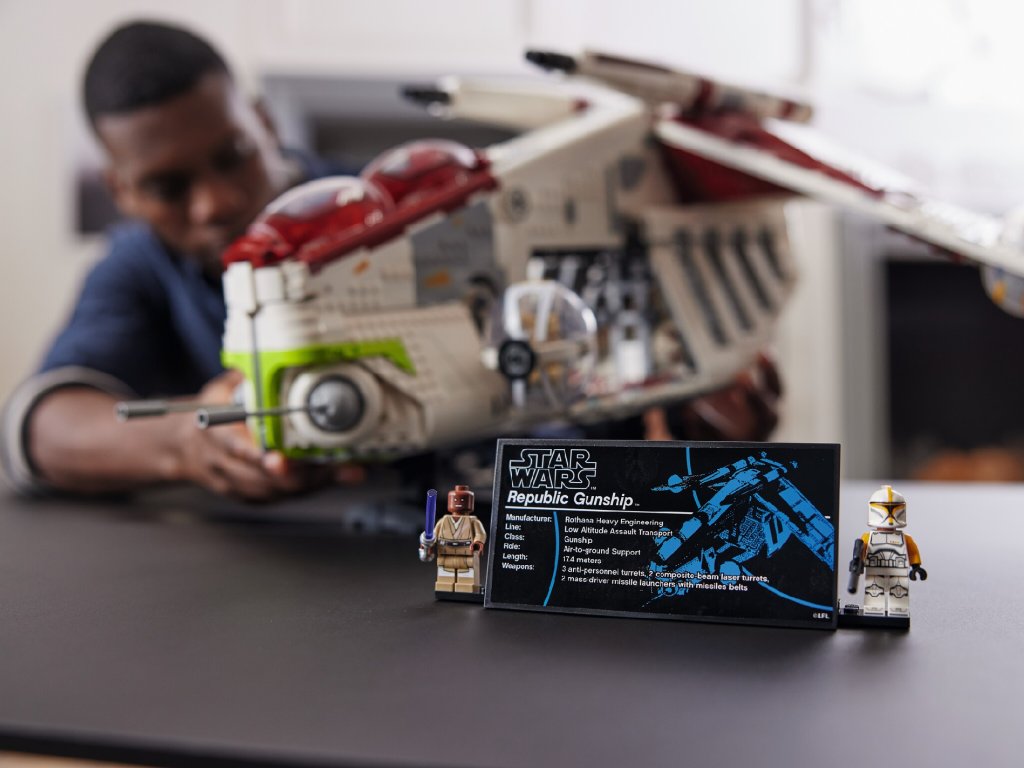 - Užijte si kvalitně strávený čas při stavění úplně první verze vesmírné lodi Republiky (75309) ze série Ultimate Collector Series, která se účastnila bojů v rámci bitvy o planetu Geonosis ze seriálu Star Wars: Klonové války.