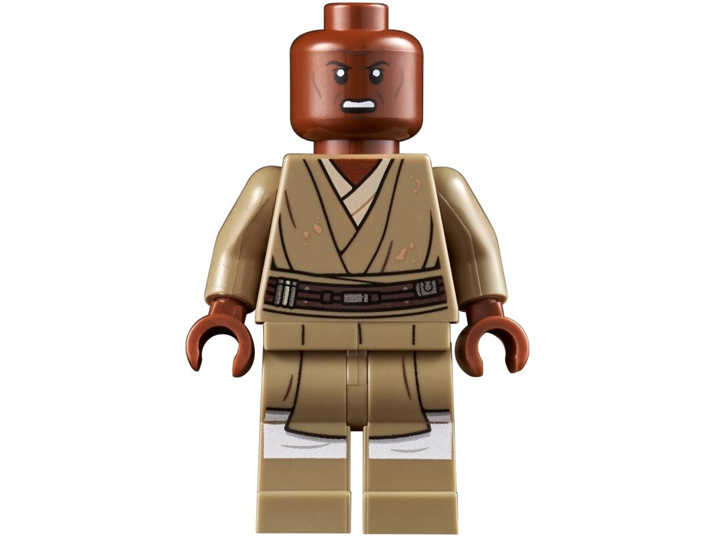 - Součástí podstavce je informativní cedulka i prostor pro 2 minifigurky LEGO® Star Wars™, které jsou součástí sady – velitel klonových vojáků s blasterem a Mace Windu se světelným mečem.