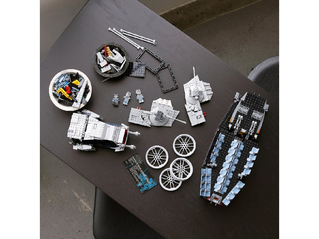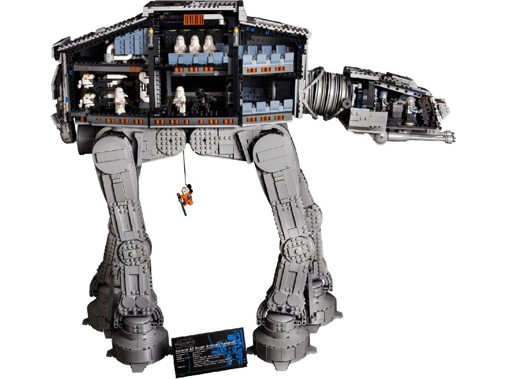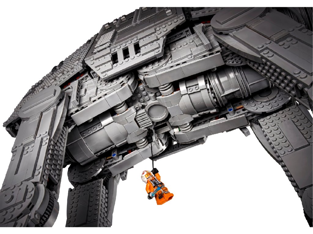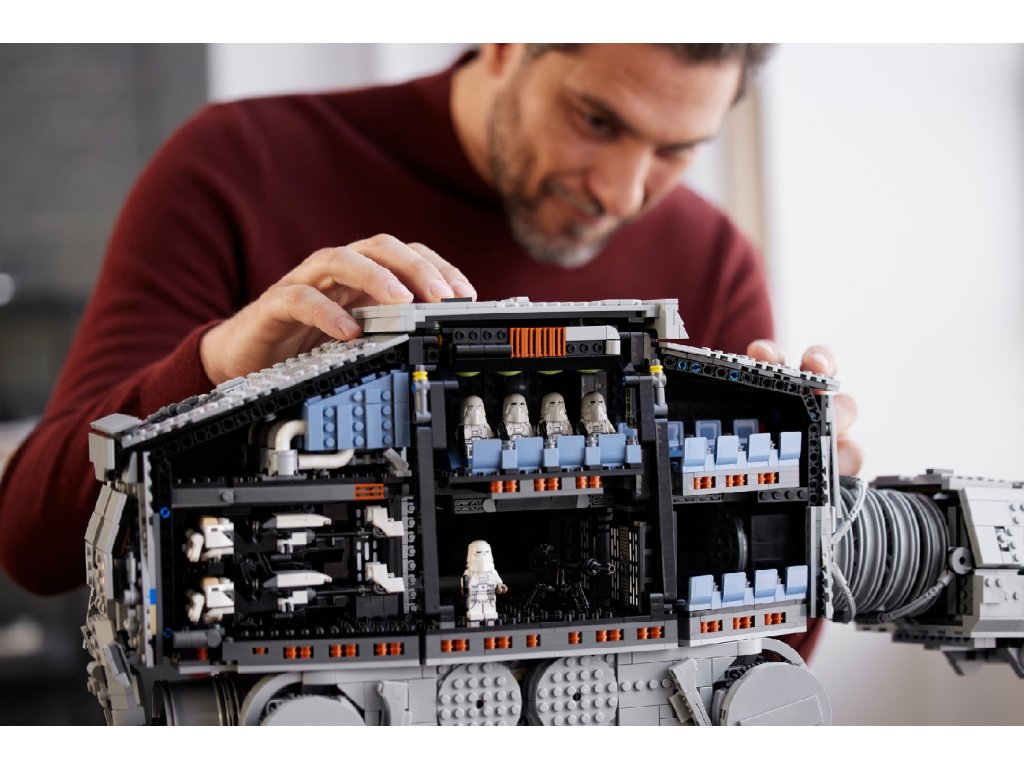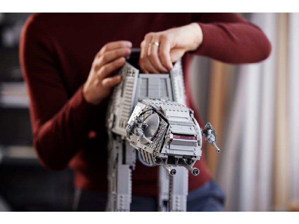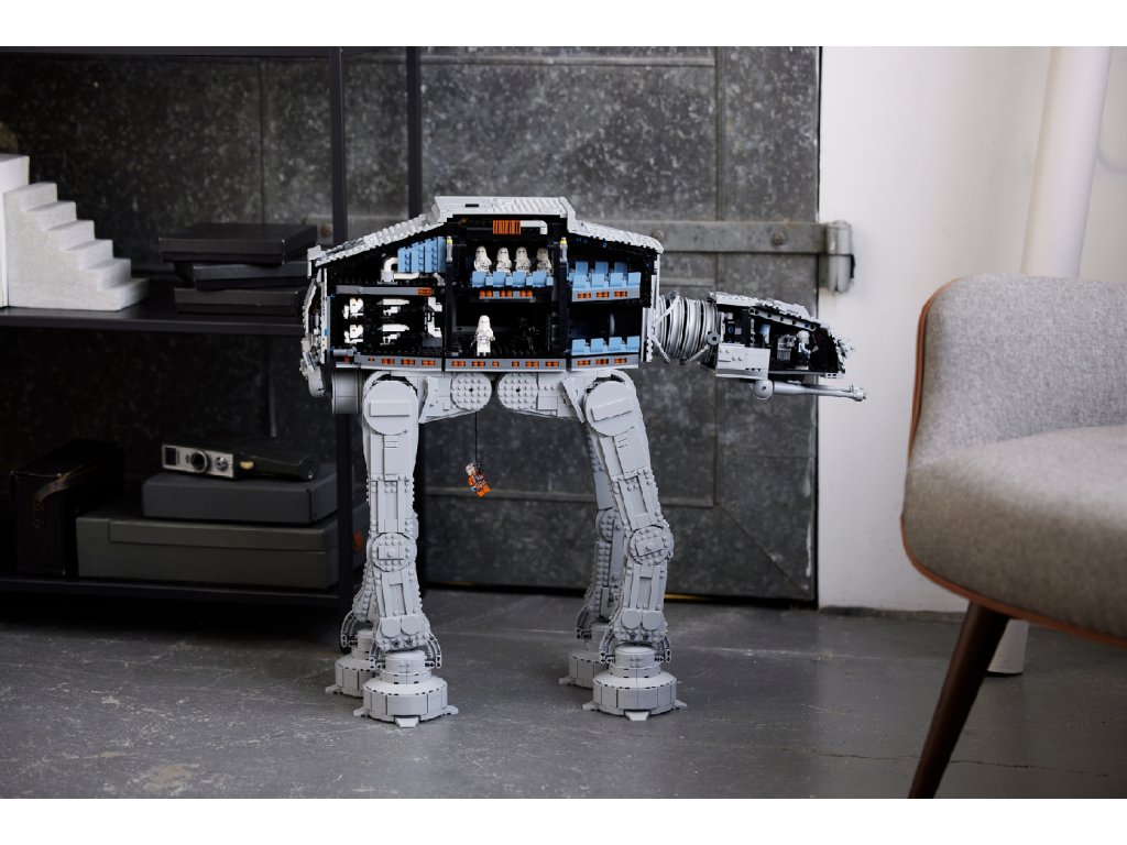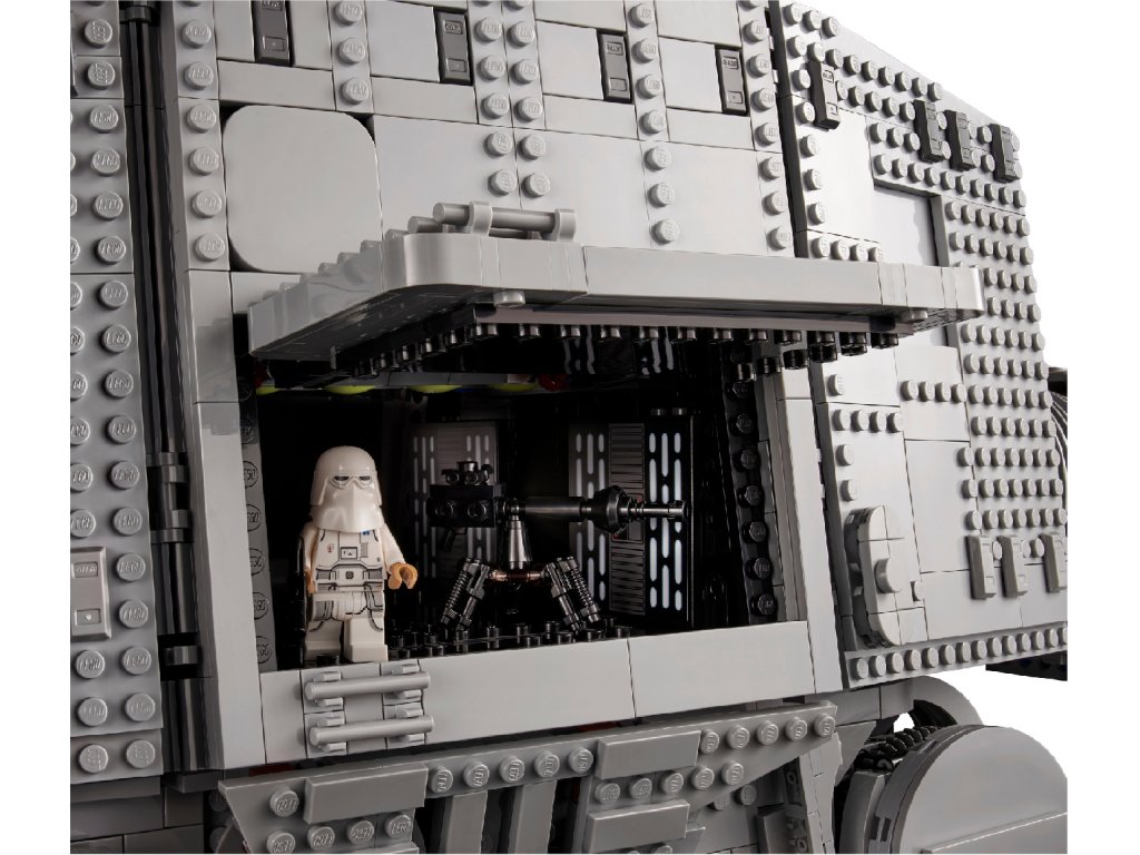 - AT-AT má odnímatelné panely, které umožňují prohlédnout si interiér. V hlavní části je místo až na 40 LEGO® minifigurek, 4 spídrové motorky (2 jsou součástí balení) a těžký opakovací blaster E-Web.