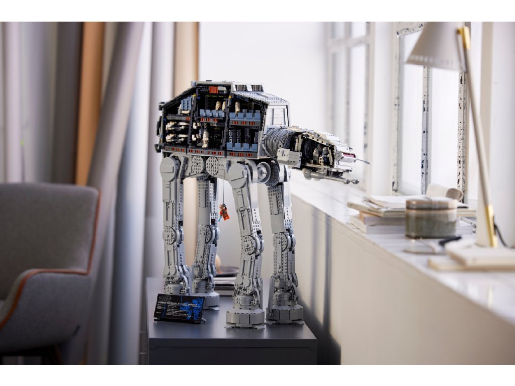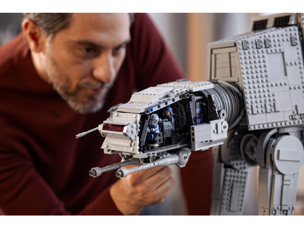 Model AT-AT měří přes 62 cm na výšku a lze jej jednoduše otevřít pro přístup k propracovanému interiéru. V hlavní části je místo na 40 minifigurek LEGO (mezi 9 minifigurek, které jsou součástí sady, patří také generál Veers a Luke Skywalker), 4 spídrové motorky (2 jsou součástí balení) a těžký opakovací blaster E-Web. Do kokpitu v hlavě lze posadit 2 přiložené minifigurky LEGO – zbude vám místo ještě na 1 další. A s informačním štítkem bude velkolepý výstavní model kompletní.
