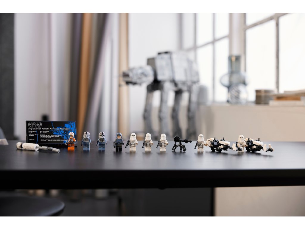 - Těšit se můžete na 9 minifigurek od LEGO® Star Wars™ – generála Veerse, Luka Skywalkera, velitele snowtrooperů, 4 snowtroopery a 2 řidiče AT-AT. Nechybí ani informační štítek, s nímž bude nepřehlédnutelný výstavní model kompletní.