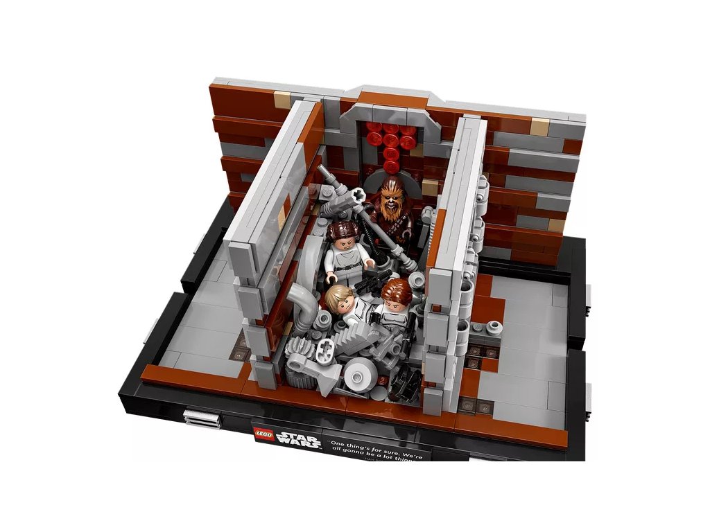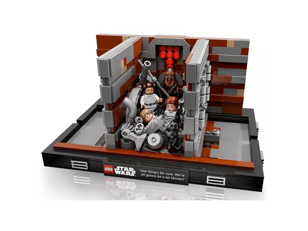 - Autentické detaily – Součástí jsou pohyblivé zdi, hlava příšery Dianoga, ovládací panel drtiče odpadků a cedulka s hláškou Hana Sola „One thing's for sure. We’re all gonna be a lot thinner.“