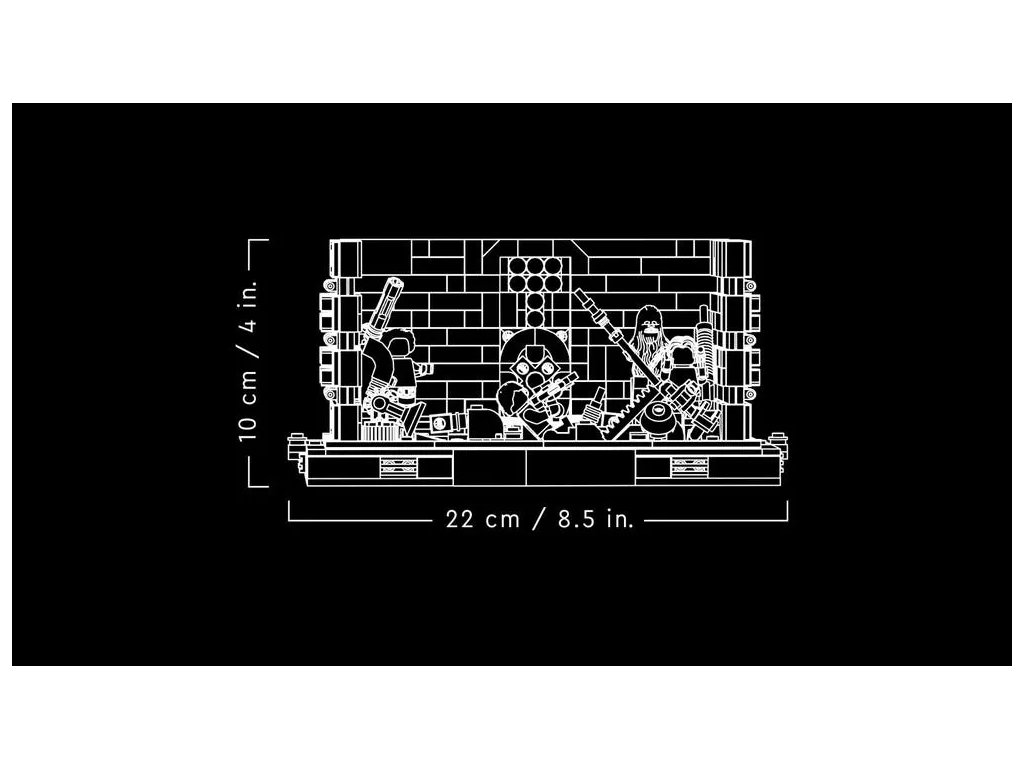 Vydejte se na kreativní misi a připomeňte si legendární scénu z filmu Star Wars: Nová naděje se stavebnicí Drtič odpadků Hvězdy smrti – diorama (75339). Je nabitá autentickými detaily, včetně pohyblivých stěn a hlavy příšery Dianoga. Umístěte Luka Skywalkera a Hana Sola (oba jsou oblečení jako Stormtroopeři), princeznu Leiu a Chewbaccu do drtiče odpadků 3263827 a roboty C-3PO a R2-D2 k ovládacímu panelu drtiče, aby jej mohli vypnout. Pak připevněte cedulku s chladnokrevnou hláškou Hana Sola („One thing's for sure. We’re all gonna be a lot thinner.“) a nostalgický výstavní kus bude hotový.