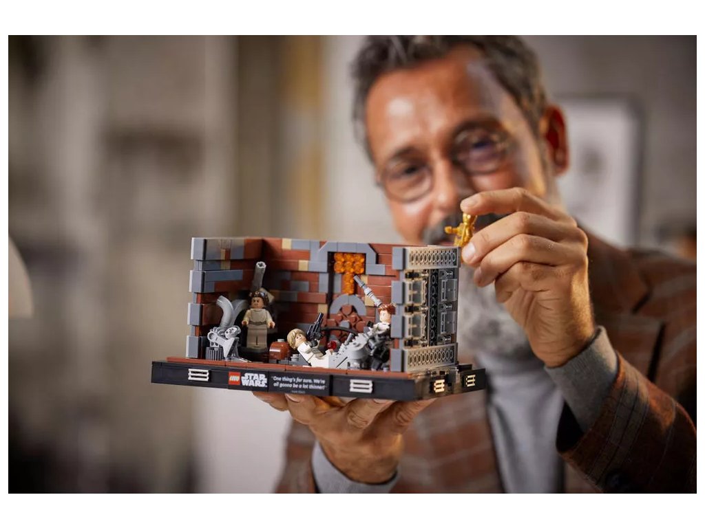 - Probuďte v sobě kreativní Sílu – Postavte si dramatickou scénu z klasického filmu Star Wars: Nová naděje v podobě výstavního modelu Drtič odpadků Hvězdy smrti – diorama (75339)
