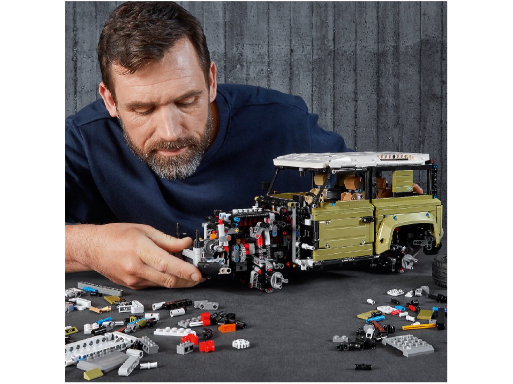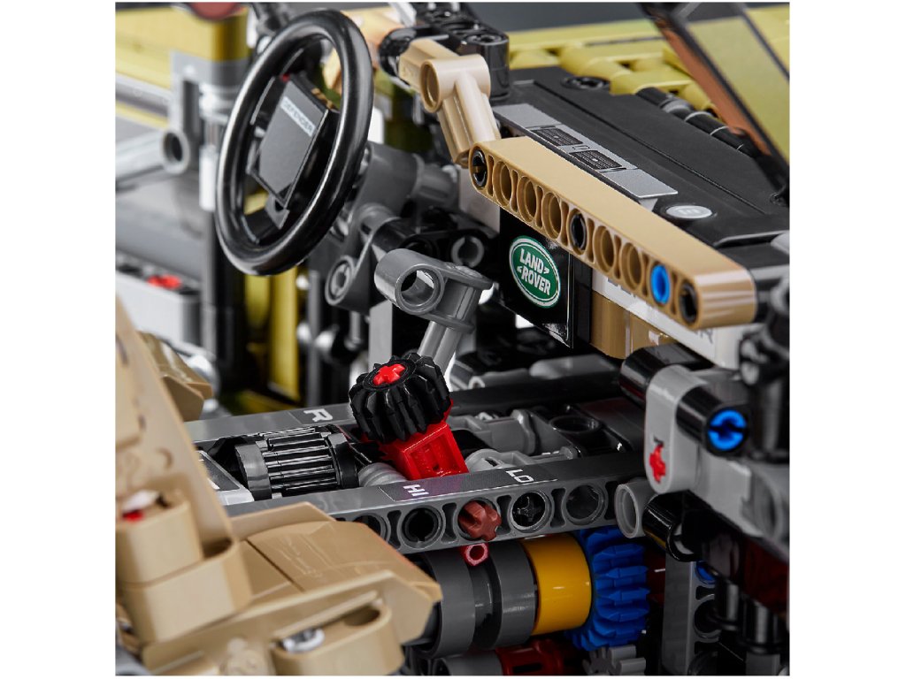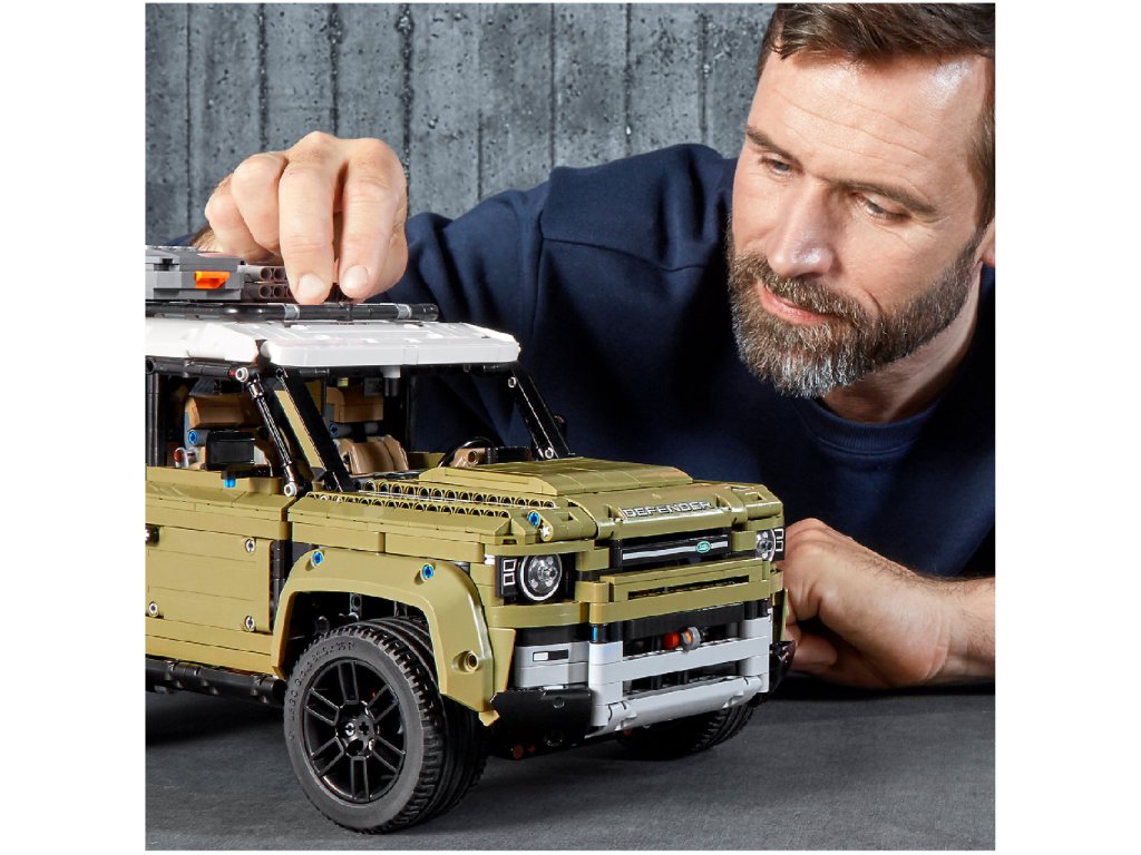 Žasni nad prvotřídním konstruktérstvím se stavebnicí 42110 LEGO® Technic Land Rover Defender. Působivý LEGO model vyvinutý ve spolupráci se společností Land Rover vystihuje rafinovanost vozu s jeho čistými a moderními křivkami. Součástí stavebnice jsou i originálními ráfky a terénní pneumatiky, a navíc spousta dalších realistických prvků a funkcí. Otevírací dveře umožňují přístup do propracovaného interiéru s funkčním volantem, podrobnou palubní deskou a převodovou soustavou se 2 pákami pro vysoký nebo nízký převodový poměr a řadicí pákou – převodový systém je novinkou pro říjen 2019 a jedná se o dosud nejdůmyslnější převodovku LEGO Technic! Uvnitř vozu jsou výklopná zadní sedadla, za kterými se 4rychlostní sekvenční převodovku ukrývá. Model však nabízí i spoustu dalších detailů. Úchvatná replika se chlubí 6válcovým motorem s pohyblivými písty pod kapotou, funkčním pohonem na všechna kola se 3 diferenciály, nezávislými tlumiči na obou nápravách a funkčním navijákem! Dokonce můžeš otevřít zadní dvířka otočením rezervního kola. Stavebnice je náročnější, ale o to báječnější stavitelský zážitek přináší. Odnímatelný střešní nosič s boxem, cestovní kufr a vyprošťovací podložky jsou pak jen třešničkou na dortu. Ideální dárek pro všechny fanoušky Land Roveru a sběratele modelů aut.