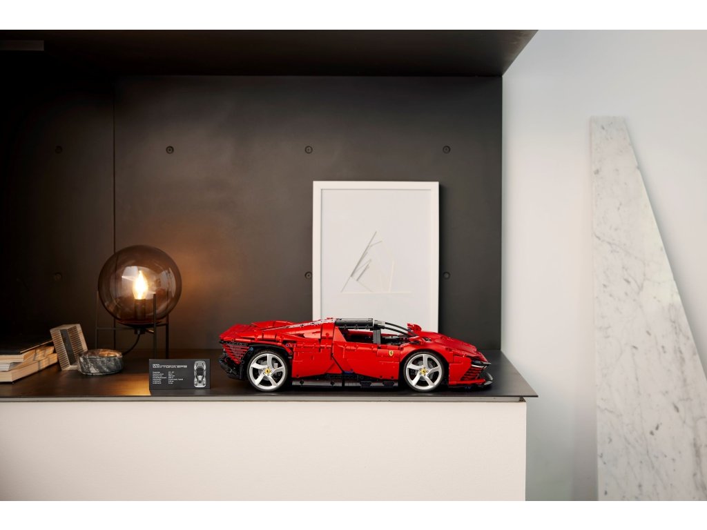 Série modelů ultimátních koncepčních automobilů od LEGO® Technic přináší působivou stavebnici pro dospělé fanoušky značky Ferrari. Vstupte do zóny soustředěného odpočinku a postavte si model vozu Ferrari Daytona SP3 v klasickém červeném provedení s chromovanými ráfky kol. Po sestavení si toto jedinečné vozidlo v měřítku 1 : 8 vystavte a obdivujte jeho ladné křivky.