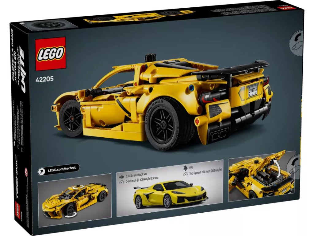 S touto propracovanou stavebnicí auta si děti od 9 let postaví vlastní model LEGO® Technic (42205) Chevrolet Corvette Stingray. Kluci, holky a milovníci rychlých aut si užijí spoustu zábavy při skládání realistických detailů a pak se pustí do prozkoumávání autentických prvků. Obdivujte úžasné barevné schéma vozu a pohybující se 8válcový motor a diferenciál. Pomocí knoflíku řiďte auto, pak otevřete dveře a kapotu a pokochejte se interiérem.